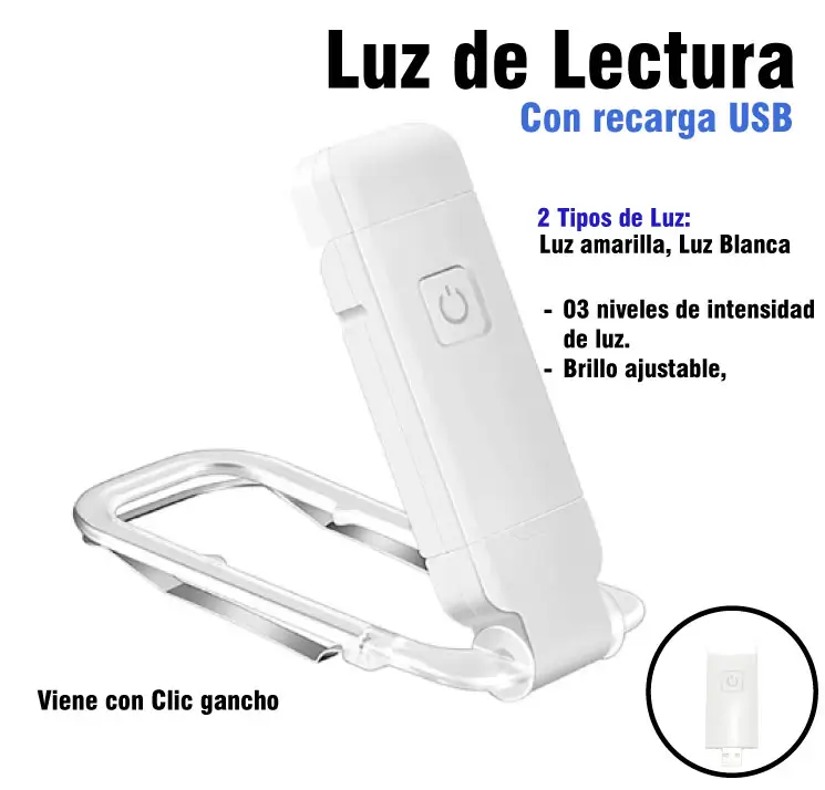 Luces de Lectura color blanco con Clic para enganchar. Para que puedas leer sin tener que usar la luz de casa.